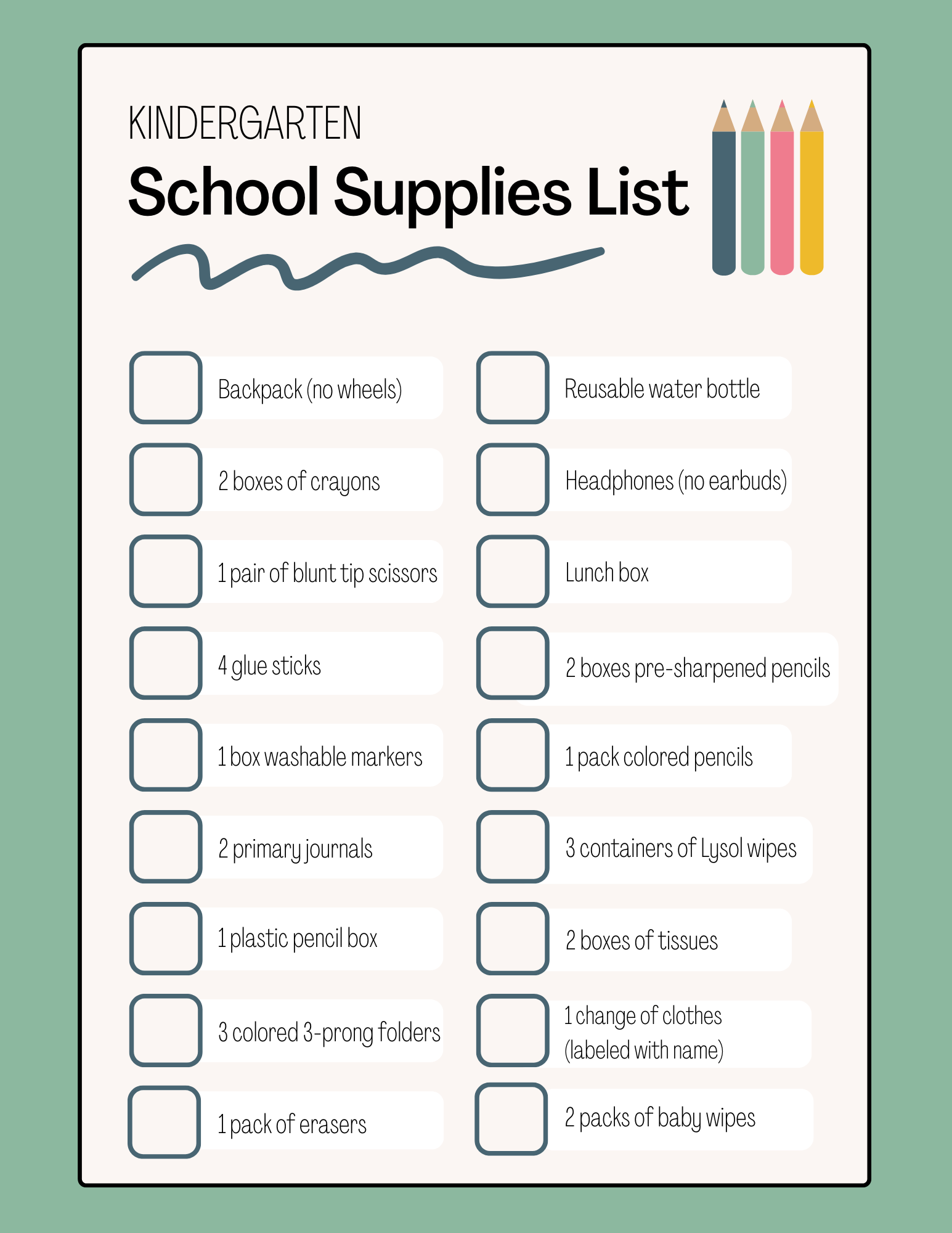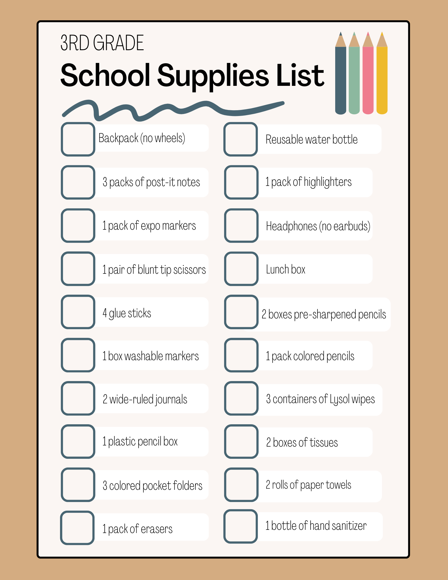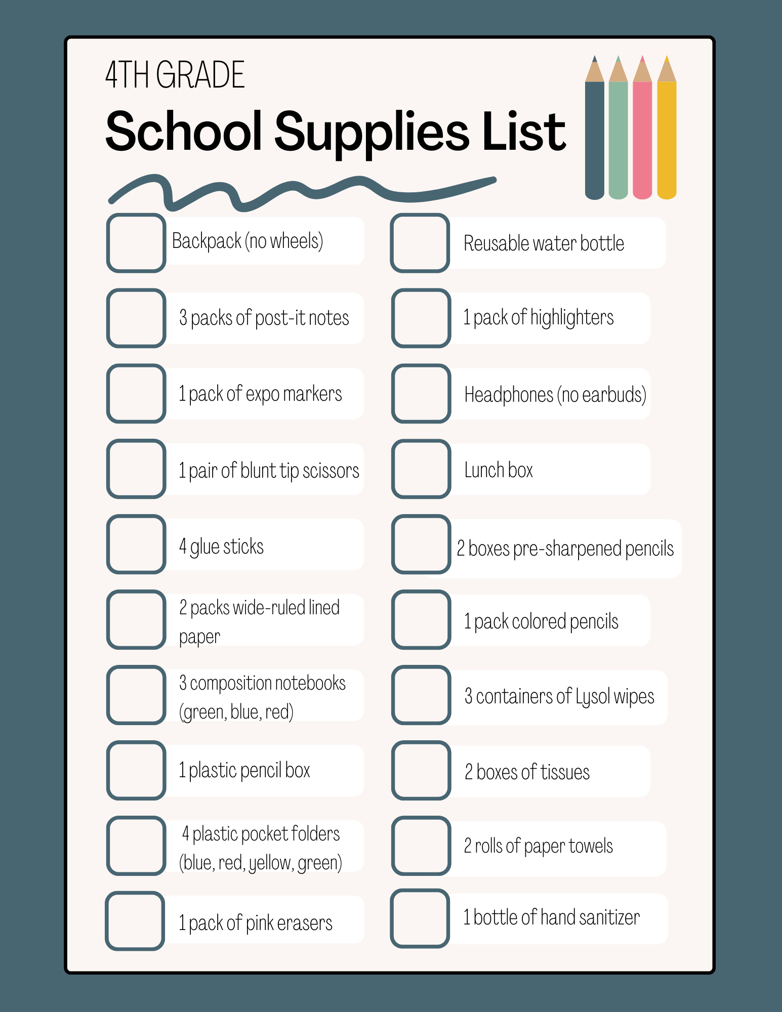 Kindergarten - 5th Grade 2025-2026 School Supplies School Supplies Kindergarten 1st Grade 2nd Grade 3rd Grade 4th Grade 5th Grade